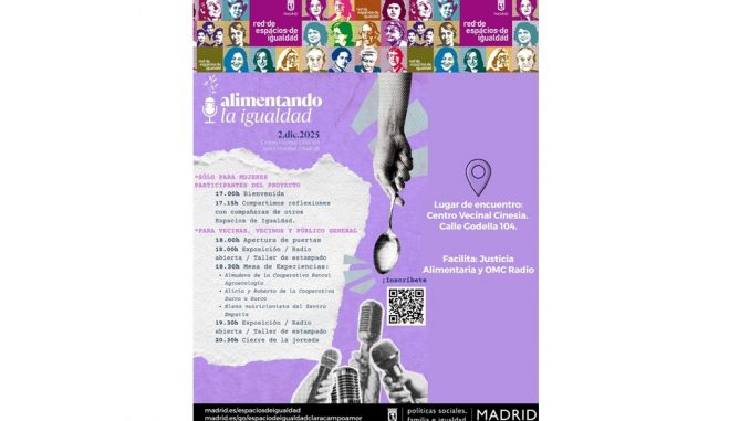 El proyecto «Alimentando la gualdad» se lleva a cabo en colaboración por las organizaciones Justicia Alimentaria y OMC Radio, y tiene como objetivo generar conciencia crítica en torno al sistema alimentario desde una perspectiva de derechos, justicia social y sostenibilidad medioambiental, con especial atención a la situación de las mujeres.