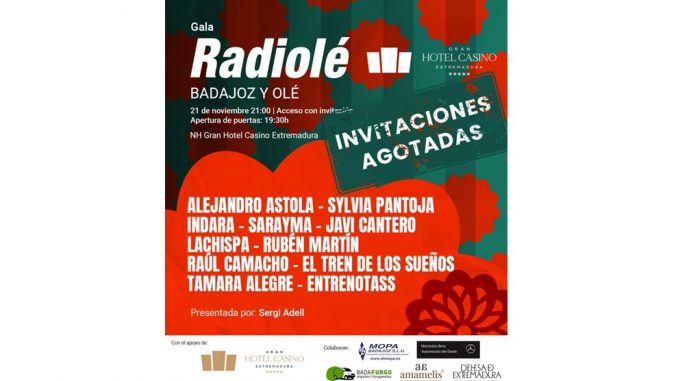 El próximo evento de Radiolé esta siendo todo un éxito. Y es que el viernes 21 de noviembre llega Badajoz y Olé. Un evento de la mejor radio que contara con muchas sorpresas y que estará presentado por nuestro querido compañero, Sergi Adell.
