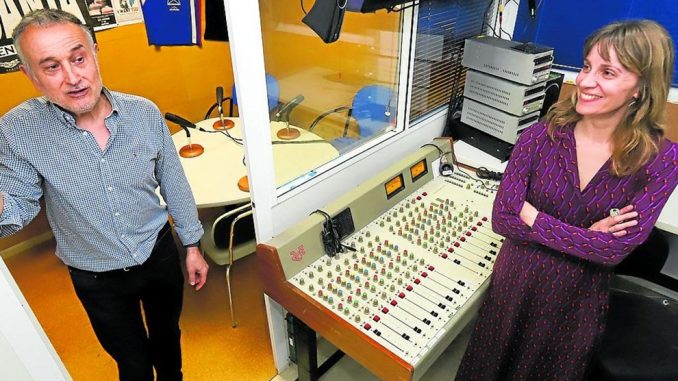Así que tras hablar con ellas y con otros alumnos interesados, se animaron a dar el salto y crear su propio estudio en el instituto, con pecera y sala con mesa de mezclas y equipos. «Empezamos a emitir antes de acabar el curso 1999-2000. Lo hicimos de manera totalmente artesanal».
