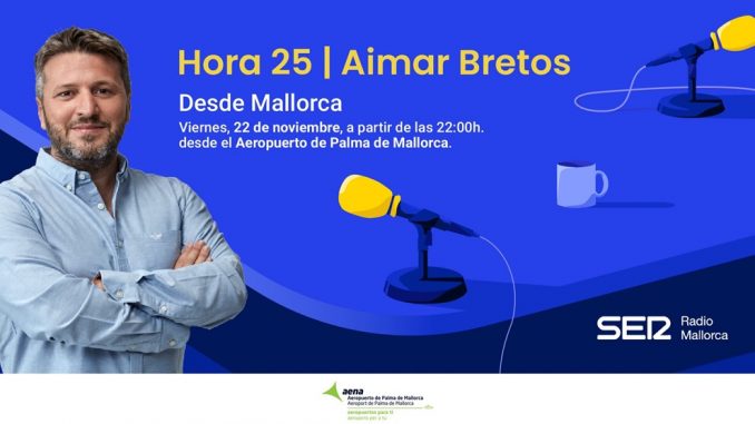 Aimar Bretos y todo el equipo de Hora 25 aterriza en Palma el próximo viernes 22 de noviembre para hacer en directo el programa desde Son Sant Joan. En una temporada de récord de viajeros se analizará los flujos turísticos, los retos y la capacidad del aeropuerto para asumir más movimientos y las principales reformas proyectadas en la instalación.