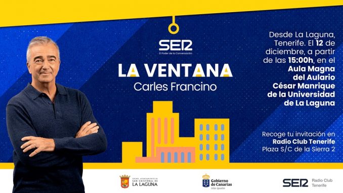 La Ventana de Carles Francino y todo el equipo del programa líder de la tarde en la Radio en España regresa al municipio de San Cristóbal de La Laguna, en Tenerife. En concreto, saludará a los oyentes el próximo doce de diciembre, coincidiendo con los actos del 25 Aniversario de la declaración de la Ciudad lagunera como Patrimonio Mundial de la Humanidad.