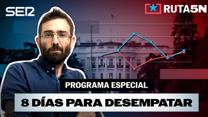 Cadena SER, El País y Huffpost analizarán el último tramo de la campaña electoral en el programa especial ‘Ruta 5N’, a partir de este lunes 28 de octubre. Periodistas y politólogos a la última hora de la abordarán la última hora de la campaña, que culminará el 5 de noviembre, el día de las elecciones. Este programa también se centrará en explicar las especificidades de las elecciones generales en Estados Unidos en las que algunos estados clave pueden ser determinantes en la elección. En estos comicios tan inciertos entre la candidata demócrata Kamala Harris y el republicano Donald Trump, la evolución de las encuestas, hasta ahora igualadas, se comentarán a diario por los expertos de ‘Ruta 5N’.