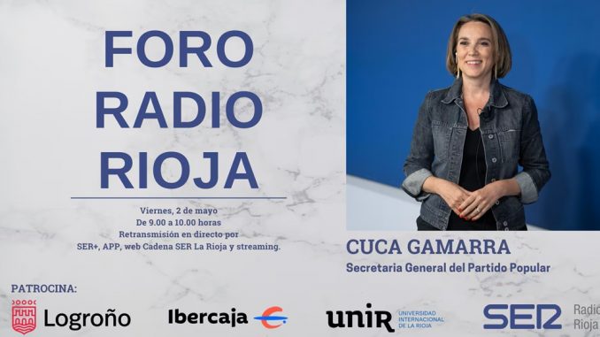2.05.2025.- Nuevo ‘Foro Radio Rioja’ en este 2025 con una ponente nacional. Esta vez, nos visita la secretaria general del PP, Cuca Gamarra, que participa en este encuentro con el tejido social y empresarial riojano, que se celebra este viernes, 2 de mayo, en Logroño.