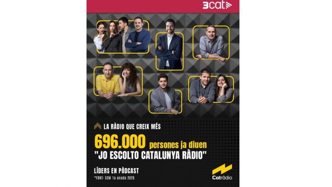 15.4.2026.- Marisa De Dios informa desde elperiodico.com que la radio en catalán sigue creciendo. Así lo demuestra el primer EGM de 2026, publicado este miércoles 15 de abril, que confirma que las dos emisoras más escuchadas siguen siendo RAC 1, que llega a los 1.098.000 oyentes diarios, y Catalunya Ràdio, con 696.000. La Cadena SER se queda con 450.000 seguidores en Catalunya.