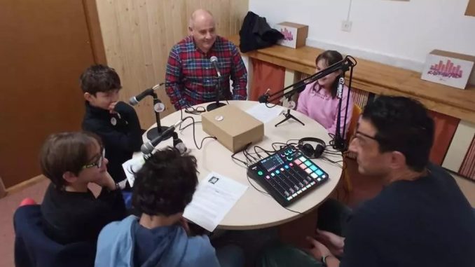 27.02.2025.- Carlos Tamargo informa desde La Nueva España que el colegio Miguel de Cervantes de La Calzada ha puesto en marcha un nuevo proyecto con el que han fundado la primera radio del centro: «somosRadiantes». La iniciativa surgió el curso pasado después de que tres profesores, entre los que se incluyó Yago Aguirre, acudieran a un cursillo de formación que otorgó la Consejería de Educación. A raíz de esto, consiguieron un equipo de radio para trabajar dentro del centro.