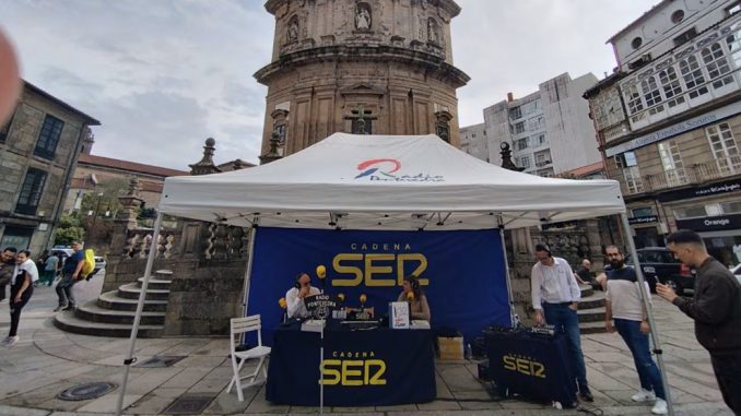 Toda la programación provincial y local se emitió desde la plaza de la Peregrina con voces históricas de Radio Pontevedra.