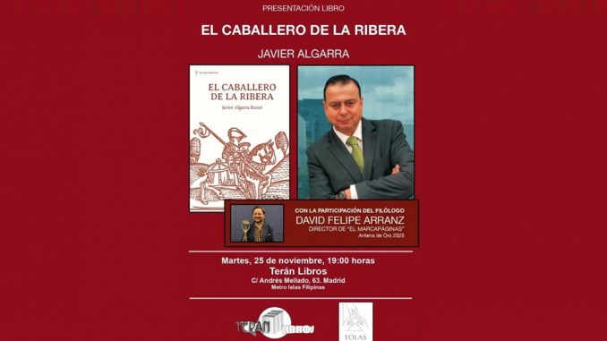 16.11.2025.- Elmundofinanciero.com informa que el próximo 25 de noviembre, a las siete de la tarde, el periodista y escritor Javier Algarra presenta su nueva novela «El Caballero de la Ribera» (Eolas Ediciones, 2025) en Libros Terán, en la calle Andrés Mellado, 63 de Madrid