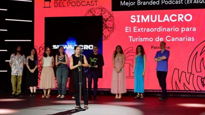 10.07.2025.- Ondafuerteventura.es publica que los IV Premios Ondas Globales del Podcast celebraron anoche en el Teatro Fernán Gómez de Madrid su cuarta edición en una gala que reunió a los principales nombres del sector en el mundo hispanohablante. Un homenaje a los mejores proyectos y creadores del momento y a todos los profesionales que dan vida a esta importante industria cultural que no deja de crecer. El podcast canario ‘Simulacro’, galardonado en los Premios Ondas Globales del Podcast
