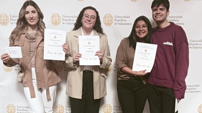 03.04.2025.- Upsa.es publica que el trabajo ‘El Primer Grito’, elaborado por los alumnos Irene Manzano Iglesias, Juan Carnero Rodríguez y Ainhoa Amaro Guerrero, ha sido galardonado con el primer premio del Concurso de Creación de Podcast 8M, promovido por la Unidad de Igualdad de la Universidad Pontificia de Salamanca (UPSA).