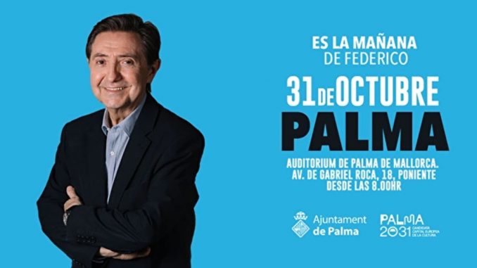 Los oyentes de esRadio tienen una cita muy especial en Palma de Mallorca: el próximo viernes 31 de octubre, el programa Es la Mañana de Federico se emitirá en directo desde la Sala Mozart en el Auditorium de Palma de Mallorca (Avenida de Gabriel Roca, 18, Poniente).