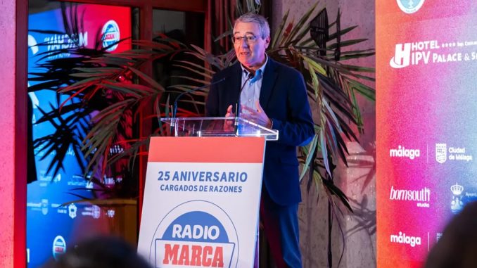 El presidente también dirigió unas palabras de felicitación al director de la emisora, Antonio Jesús Merchán, reconociendo su trayectoria y su capacidad para evolucionar con los nuevos tiempos. “Quiero felicitar a Antonio por los 25 años y su adaptación a los nuevos tiempos, siempre dejando un hueco para los nostálgicos como yo”, afirmó, subrayando el equilibrio entre modernización y tradición que caracteriza a Radio Marca Málaga.