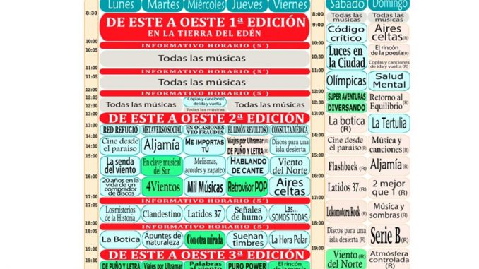 Antes que nada, eso sí, queremos agradecer todos los años de emisión y la dedicación empleada a los programas “Al mal tiempo, sevillanas”, “Indie-re”, “El túnel del tiempo”, “Ruta 66”, “Rockola”, “Bass Club”, “Culos inquietos” que han causado baja para la próxima temporada por diferentes motivos.