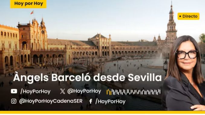 27.2.2026.- Este viernes, 27 de febrero, Hoy por Hoy, con Àngels Barceló, se emite en directo desde Sevilla. Desde las 8:00, el programa líder de la radio española se traslada al Teatro Cajasol, en la víspera del Día de Andalucía, en una edición especial abierta al público para vivir la radio en directo, con actualidad, análisis y mirada andaluza en una fecha muy señalada.