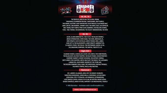 7.1.2026.- Os presentamos Radio Rock Festival. Una Radio Online donde suenan las mejores canciones de la historia de la Música Rock, desde los 50 hasta hoy y que no repite canción en 5 días. Y un Festival Digital donde tocan las 400 mejores bandas – artistas del Rock. Prepárate para escuchar los mejores hits, recordar los éxitos de toda la vida, descubrir nuevos temazos y sobre todo disfrutar con tanta variedad musical. Además, tienen cabida muchos grupos de gran repercusión y bandas míticas que no suenan en ninguna radio en la actualidad, con muchas canciones que no han llegado a ser las más famosas, pero que merecen ser escuchadas.