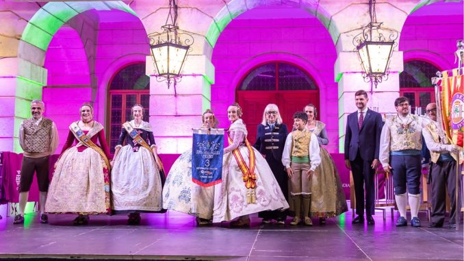 2.3.2026.- La directora de COPE Onda Naranja, Inmaculada Aparisi, entregó junto con las Falleras Mayores de Gandia, Triana Benavent Chover y Manuela Borrull Guillem, acompañadas por el presidente de la Federación de Fallas, Francisco Martínez Chover; el alcalde de Gandia, José Manuel Prieto Part y el concejal de Fallas, Adrián Vila Part, los banderines en un acto celebrado ante la fachada principal del Ayuntamiento de Gandia.