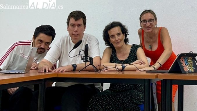 Usuarios de Asprodes en Vitigudino participan en el taller de radio y poscast ‘Nosotros también contamos’, actividad cuyo primer programa podrá escucharse en la emisora municipal de radio de Vitigudino y posteriormente en la plataforma Ivoox.
