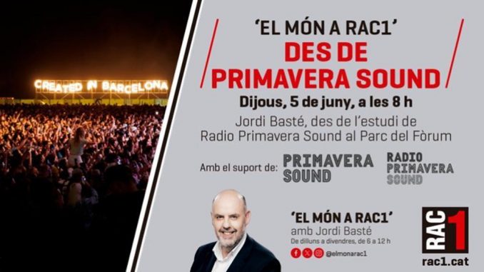El próximo jueves, 5 de junio, de 8 a 12 h, El món a RAC 1 con Jordi Basté, en directo desde Primavera Sound.