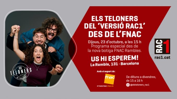 Os esperamos el próximo jueves, 23 de octubre, en la nueva tienda FNAC Rambles, en Barcelona, con «Els Teloners»!