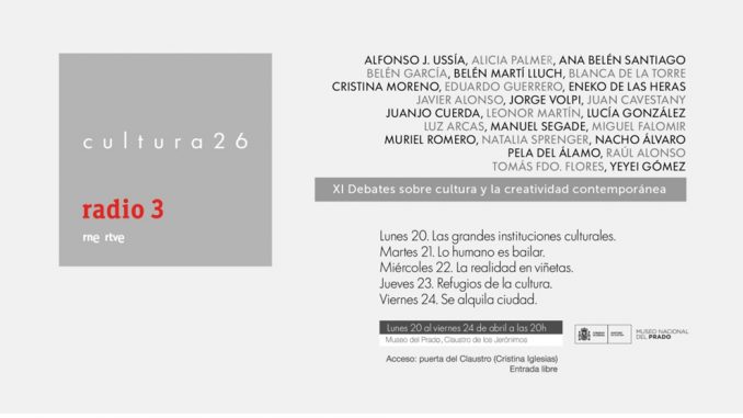 31.3.2026.- Radio 3 presenta Cultura 26, una nueva edición del ciclo de debates que se celebrará en el Claustro de los Jerónimos del Museo del Prado, un espacio excepcional para la conversación en torno a la cultura contemporánea.