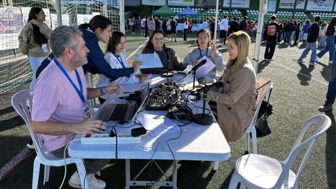 Marcos Matías es el profesor que gestiona desde hace cuatro cursos el proyecto de periodismo escolar del instituto. Todas las entrevistas del Encuentro Insular de Secundaria se emitirán en formato pódcast el próximo miércoles en el programa Roscas y Cotufas, con Tomás Galván. El equipo de la radio está conformado por una veintena de alumnos y alumnas. Estudiantes del periódico digital –El colador del Alonso– y de la radio fueron hoy a informar del encuentro a través de la radio escolar.