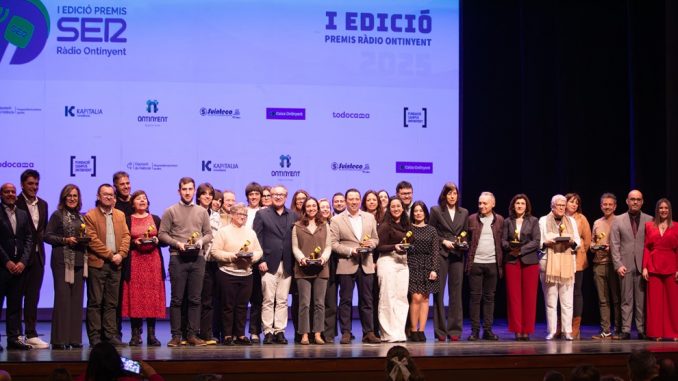 La primera edición de los Premis Ràdio Ontinyent ya es una realidad y lo hizo con un rotundo éxito. El Teatro Echegaray de Ontinyent acogió en la tarde del miércoles 25 de febrero una gala que reunió a autoridades, asociaciones, colectivos sociales y culturales, empresas colaboradoras y numerosos vecinos de la comarca en una velada concebida para poner en valor el talento y el compromiso de la Vall d’Albaida.