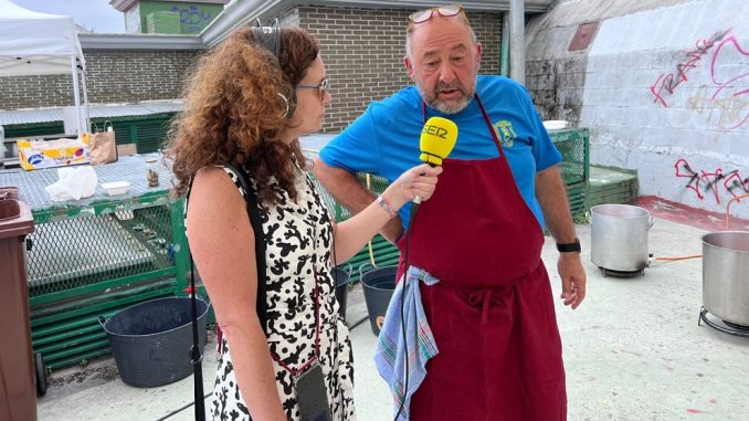 Coincidiendo con la víspera del Día de Santiago, Hoy por Hoy Cantabria se ha emitido desde las calles de Santander, en directo, en plena Semana Grande 2024 para vivir el ambiente y el sentimiento de las fiestas. El programa se ha iniciado conociendo los preparativos de la comida solidaria, que este miércoles 24 de julio, corría a cargo de la Peña Lachicoria-Los Callealteros. En las pistas de la calle Duque de Ahumada prepararon unas 500 raciones de patatas con costilla.