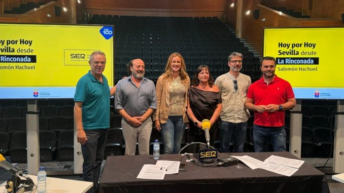 Salomón Hachuel volvió a La Rinconada para presentar un nuevo especial del programa ´Hoy por Hoy´ de Radio Sevilla. En su espacio provincial, el matinal radiofónico se dedicó a poner en valor la amplia programación cultural que existe en La Rinconada, pasando varios de los protagonistas de la programación, además de la Primera Teniente de Alcalde y delegada de Cultura Raquel Vega. El presentador ceutí, cara reconocida de Radio Sevilla, comenzó el programa alabando el músculo cultural del municipio, pues “año tras años comprobamos el nivel de la programación cultural de La Rinconada, una programación que pone en valor la apuesta cultural que existe en esta localidad”.