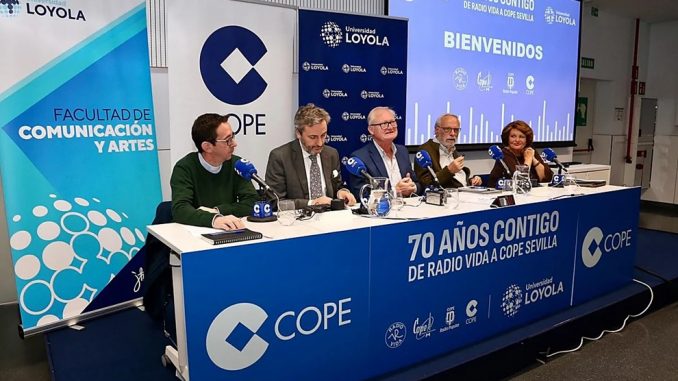 20.11.2025.- Cristina Rubio informa desde abc.es que la Universidad Loyola Andalucía ha sido escenario este miércoles del 70 aniversario de la cadena Cope, una especial ocasión para la que se ha emitido un programa en directo con algunos de los protagonistas que sembraron el germen de lo que es hoy la emisora. «De Radio Vida a Cope Sevilla», ha sido el programa especial que el director de la cadena en la provincia hispalense, Joaquín López-Sáez, ha conducido desde el campus de Dos Hermanas. Para ello ha contado con la participación de algunas de las voces que impulsaron Cope en sus primeros años como Mari Carmen de las Casas, Eva Montesinos o Manolo Blázquez. «Radio Vida es un reflejo de la propia historia de la radio en Sevilla», ha explicado el director.
