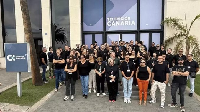 Vestidos de negro, los trabajadores de RTVC han dejado clara su oposición “al despropósito que supone la nueva Ley planteada por el ejecutivo canario”. Un texto que “deja la puerta abierta a la privatización de los servicios informativos de la casa”.