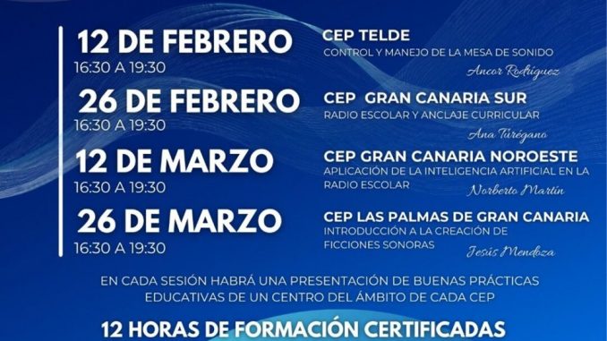 13.1.2026.- Desde el Área de Comunicación- Programa de Lectura, Bibliotecas y Radios Escolares de Innovación Educativa te invitamos a participar en el evento formativo I Encuentro Formativo Inter-CEP de Radios Escolares de Gran Canaria.