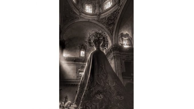 El primer premio, dotado con 400 euros, ha sido para el crevillentino Juan Francisco Candela por una potente imagen en blanco y negro captada en el interior de la Basílica de Santa María. La fotografía muestra a la Virgen de la Asunción de espaldas, enfrentada a la imagen del Cristo Resucitado. El autor ha sabido jugar con el enfoque selectivo y la iluminación para contornear el relieve de la figura, resaltando con precisión los detalles de la corona, el manto y la arquitectura del templo. Candela es un asiduo al concurso y ya ganó en 2024.