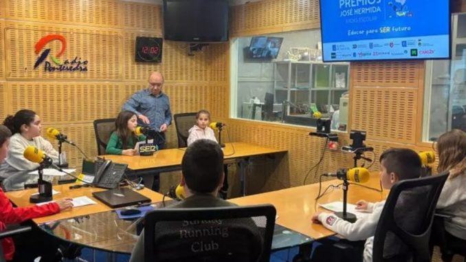 26.2.2026.- Farodevigo.es informa que los estudiantes de Educación Primaria del CEIP de Oca protagonizaron el pasado lunes una jornada pedagógica y cultural muy especial, con motivo de la celebración del Día de Rosalía de Castro. El grupo se desplazó hasta las instalaciones de Radio Pontevedra para participar en una emisión en directo dedicada a la escritora gallega, para la que realizaron una investigación previa. Allí también conocieron a Orbil, la mascota del Salón do Libro Infantil e Xuvenil de Pontevedra.