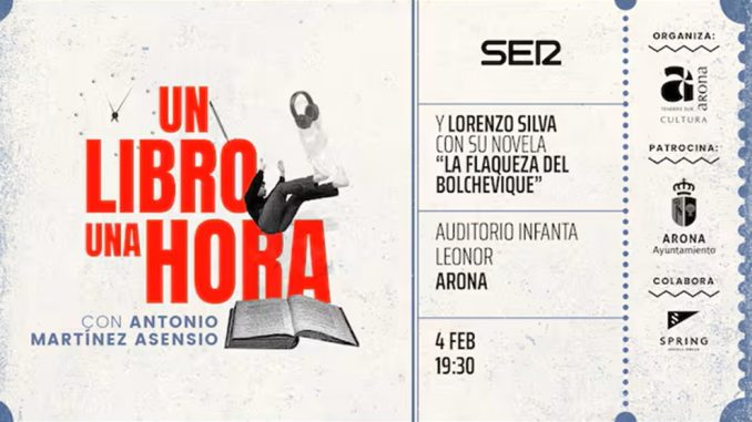 Arona estrena el año con La SER y con literatura. El aclamado programa de La SER «Un libro, una hora», recientemente galardonado con un Premios Ondas 2025, estrenará en el municipio tinerfeño del sur de la isla canaria su recorrido literario por el país con Lorenzo Silva, el autor de la novela ‘La flaqueza del bolchevique’ que mantendrá desde el Auditorio Infanta Leonor una conversación con Antonio Martínez Asensio. También se sumarán a la grabación de este episodio el actor Eugenio Barona y la actriz Laura Carrero.